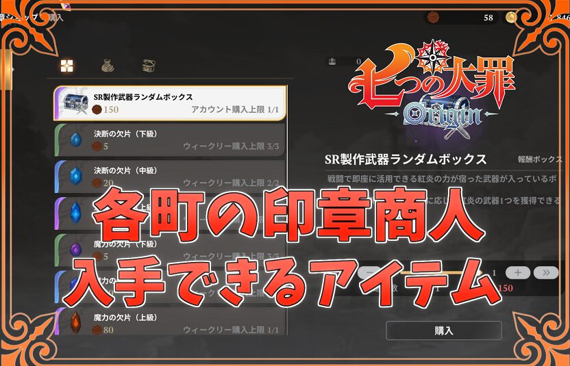 【ナナオリ】各町の印章商人で入手できるアイテムについて