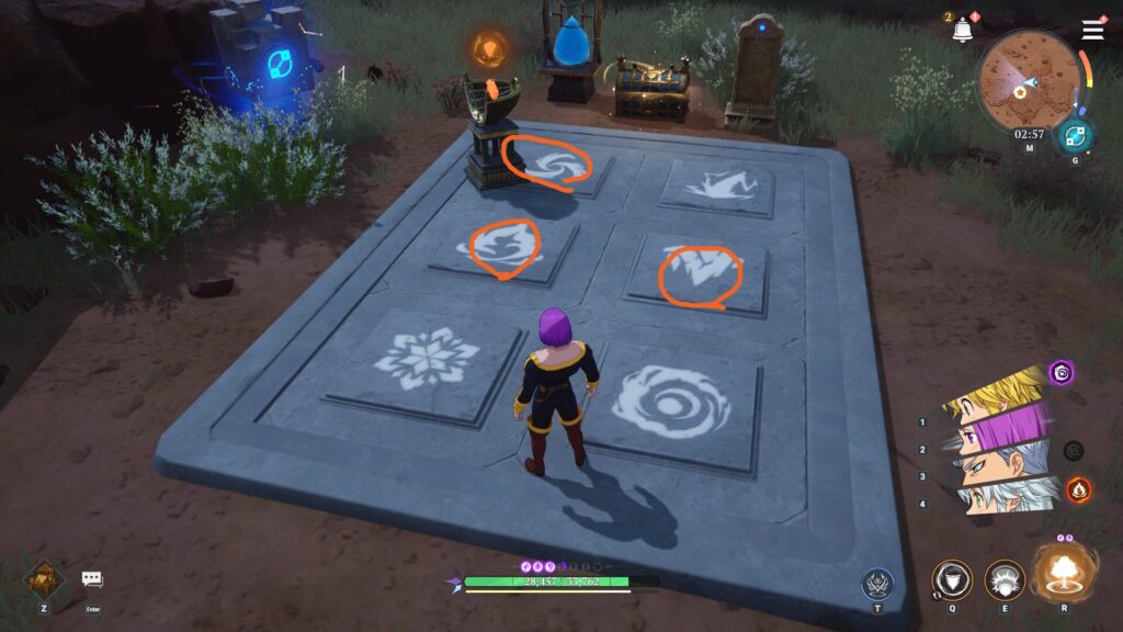 火→大地の順で石を置き、風マークのところに大地属性の石を置きます。置いたら暗黒マークのところにキャラクターを乗せます。