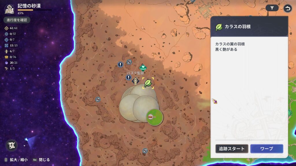 バステ監獄近くのワープポイントから東に行くとカラスの羽根が落ちています。