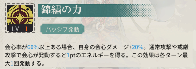| エネルギー自動回復 | 0 | 防御穿通 | 0 |