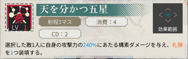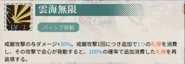 | 礼弾追加装填 | 0 | 命中率 | 100 |