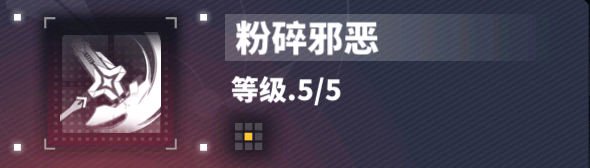 | 自身のターン開始時、このスキルはランダムで【邪悪粉砕】または【邪悪裂断】に置き換わります 【邪悪粉砕】:敵単体に1回、攻撃力の140%のエネルギーダメージを与え、攻撃後40%の確率で対象に1ターンのスタンを付与 【邪悪裂断】:敵単体に1回、攻撃力の140%のエネルギーダメージを与え、攻撃後50%の確率で対象に2ターンの裂傷を付与 |