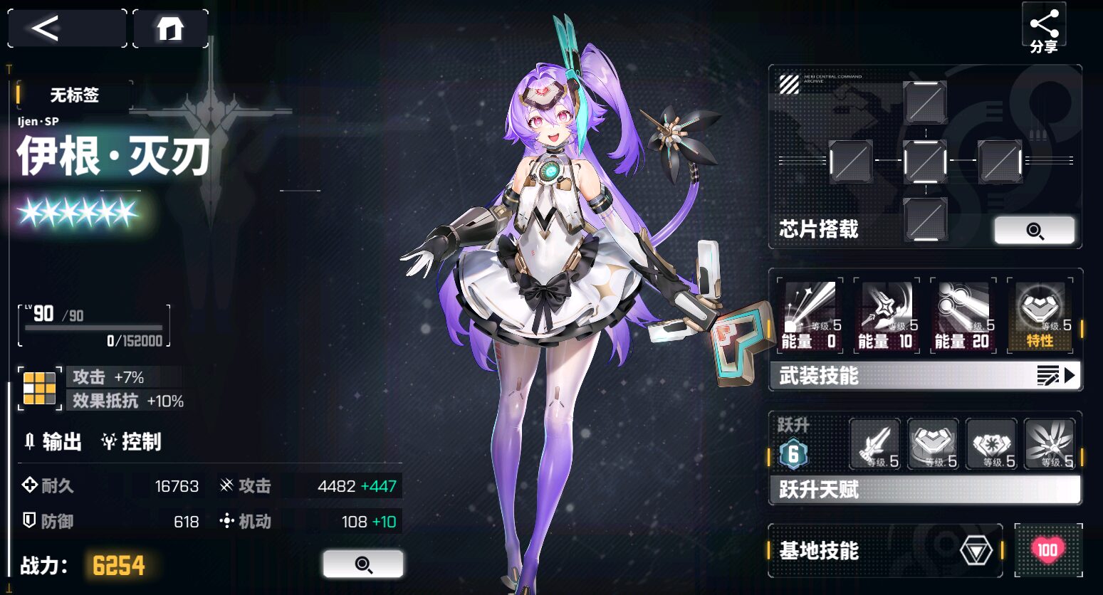 | 自身が1%の効果命中を持つごとに、自身の攻撃力が15上昇する。 双方のユニットのターン開始時、自身は1層の愛の魔法を獲得し、解除不可;双方のユニットのターン終了時、愛の魔法の層数が奇数の場合、【50%+愛の魔法の層数】の確率でランダムな敵に【邪悪粉砕】を使用。 愛の魔法の層数が偶数の場合、【50%+愛の魔法の層数】の確率でランダムな敵に【邪悪裂断】を使用;ターン終了時に対象が5つの劣化を持っている場合、3つの劣化効果を爆発させる。 愛の魔法:1層ごとに自身の効果命中が3%増加する |
