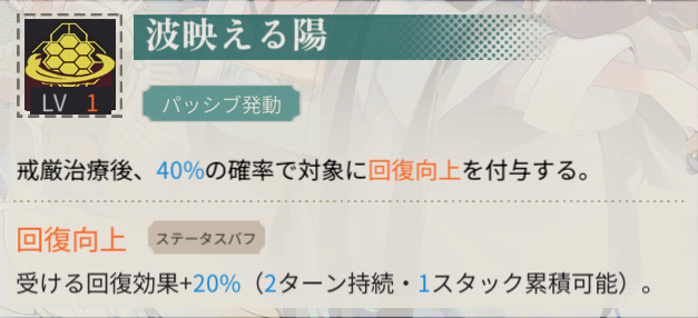 | 回復効果上昇 | 0 | 被回復効果上昇 | 0 |