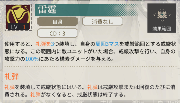 | 礼弾追加装填 | 0 | 命中率 | 100 |