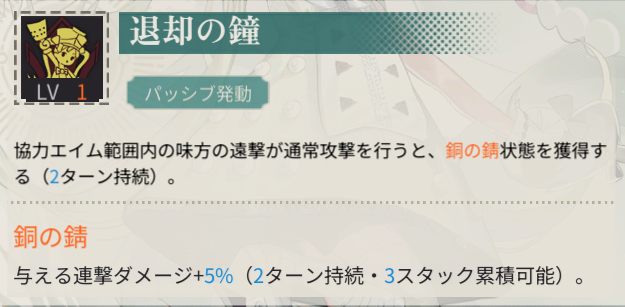 | 伍 | 有利属性被ダメージダウン 20% |