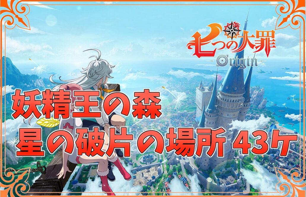 この記事は、七つの大罪:Origin(ナナオリ)の妖精王の森に落ちている星の破片の場所について紹介しています。参考になれば幸いです。 おすすめ記事 星の破片の場所(リオネス) 星の破片の場所(妖精王の森) 星の破片の場所(風谷の海域) クーポンコードの入力方法について 【王子の訓練服】を装着するがクリアにならない理由 目次妖精王の森に落ちている星の破片の場所(43か所) 妖精王の森に落ちている星の破片の場所 まとめ 以上が、妖精王の森に落ちている星の破片の場所についてでした。 ゲーム攻略 ナナオリ よかったらシェアしてね! URLをコピーしました! URLをコピーしました! この記事を書いた人 せん こんにちは、せんです! このサイトでは『SAOアリブレ』や『インディーゲーム』などの攻略記事を書いてます。参考になれば幸いです。 ネタ提供や紹介してほしいゲームがありましたらお問い合わせにお願いします。 関連記事 【ナナオリ】星の破片の場所について(風谷の海域) 2026年3月18日 【ナナオリ】素材や星の破片の場所など役立つ情報まとめサイト 2026年3月18日 【ナナオリ】星の破片の場所(リオネス) 2026年3月18日 【ナナオリ】刻印装備【王子の訓練服】を装着するがクリアにならない理由 2026年3月17日 【ナナオリ】Twitch Dropsイベントの実施について 2026年3月17日 【ナナオリ】ゲームをプレイするための最低・推奨動作環境について 2026年3月15日 【ナナオリ】ゲーム内コンテンツのリセット時間はいつ? 2026年3月15日 【ナナオリ】クーポンコードの入力方法について 2026年3月15日 コメント コメントする コメントをキャンセルコメント入力欄 ※ お名前(ニックネーム可) 次回のコメント入力欄で使用するためブラウザーに自分のお名前(ニックネーム可)、メールアドレス、サイトを保存する。 Δ